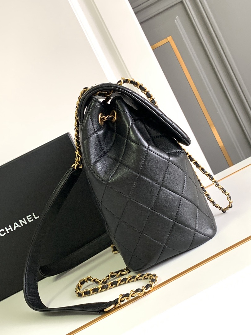 chanel 24p duma backpack black shiny lambskin gold hardware small