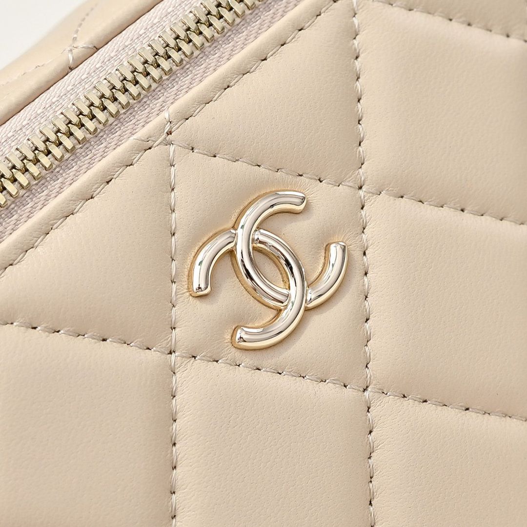 chanel long vanity case bag apricot shiny lambskin gold hardware