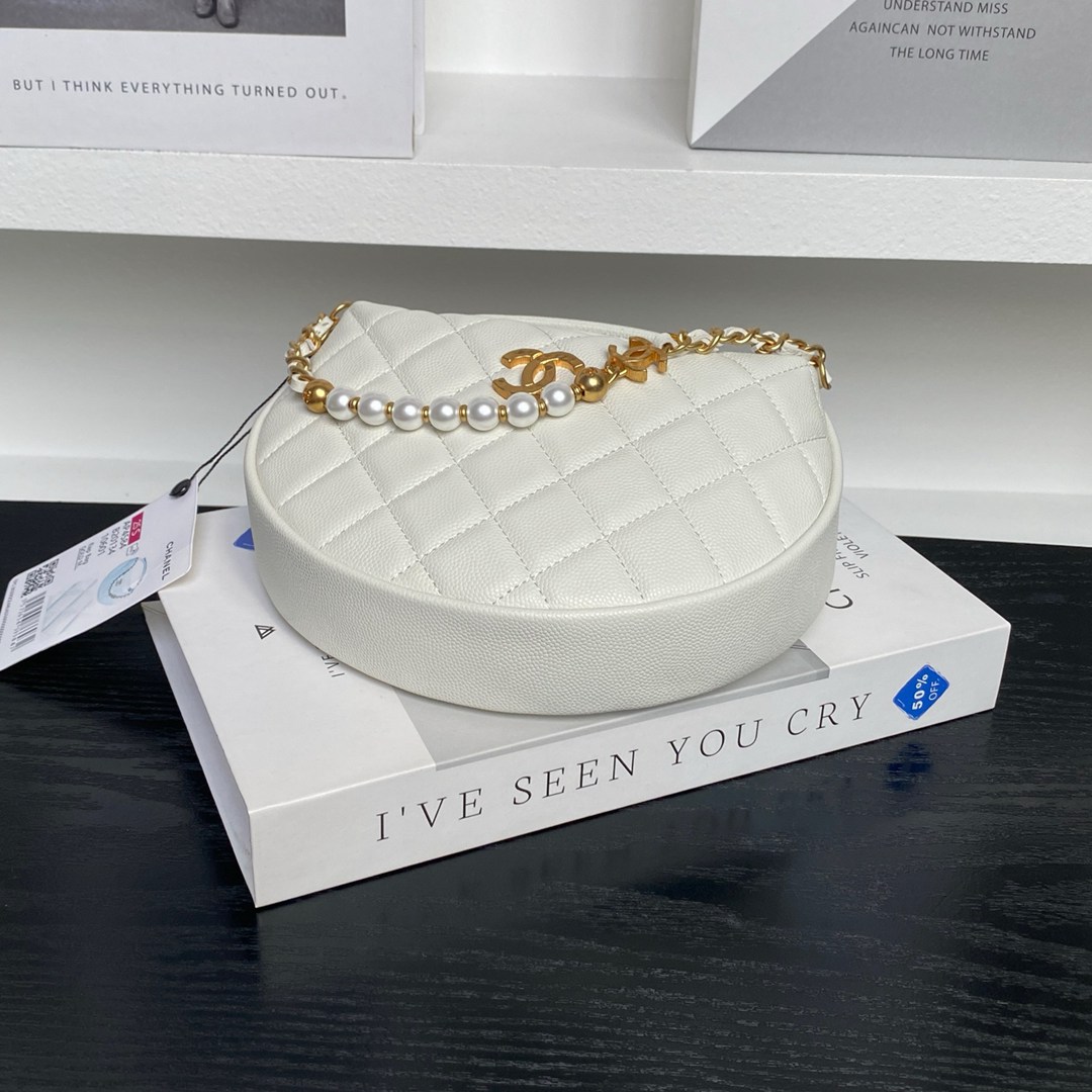 chanel 25s Pearl Crescent bag white grained calfskin gold hardware