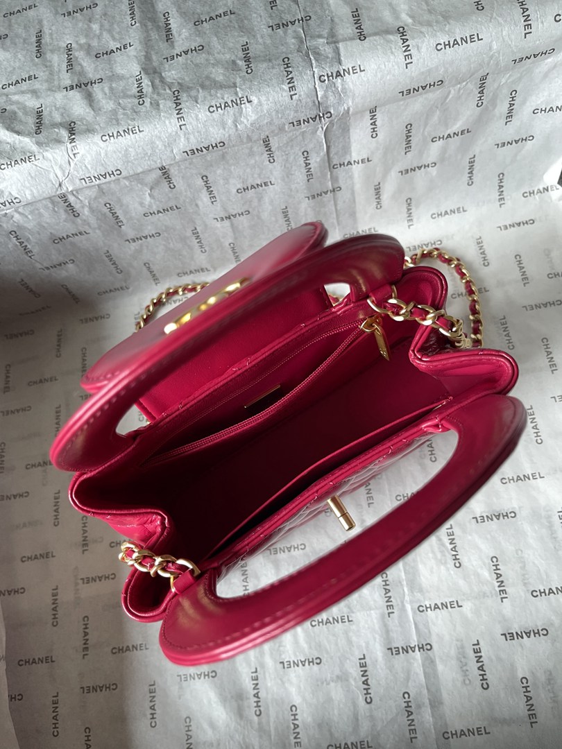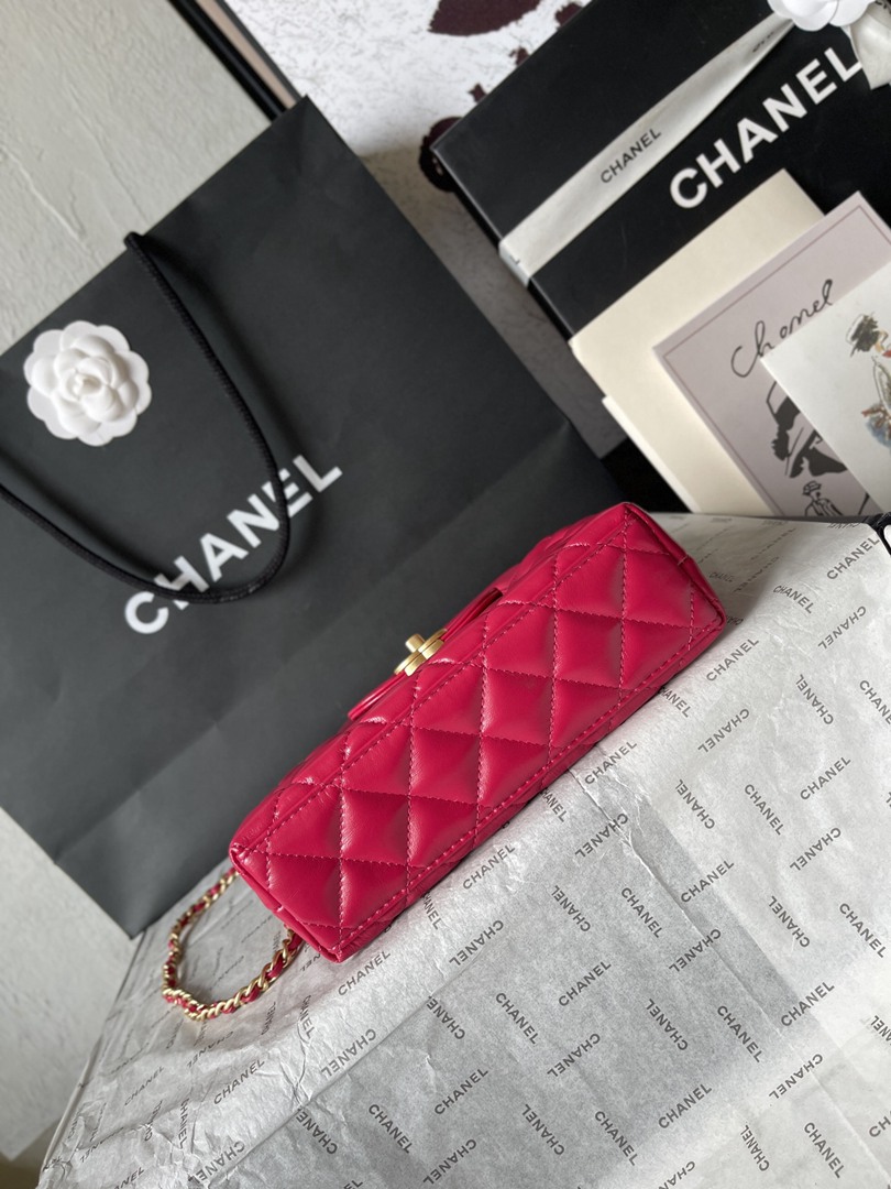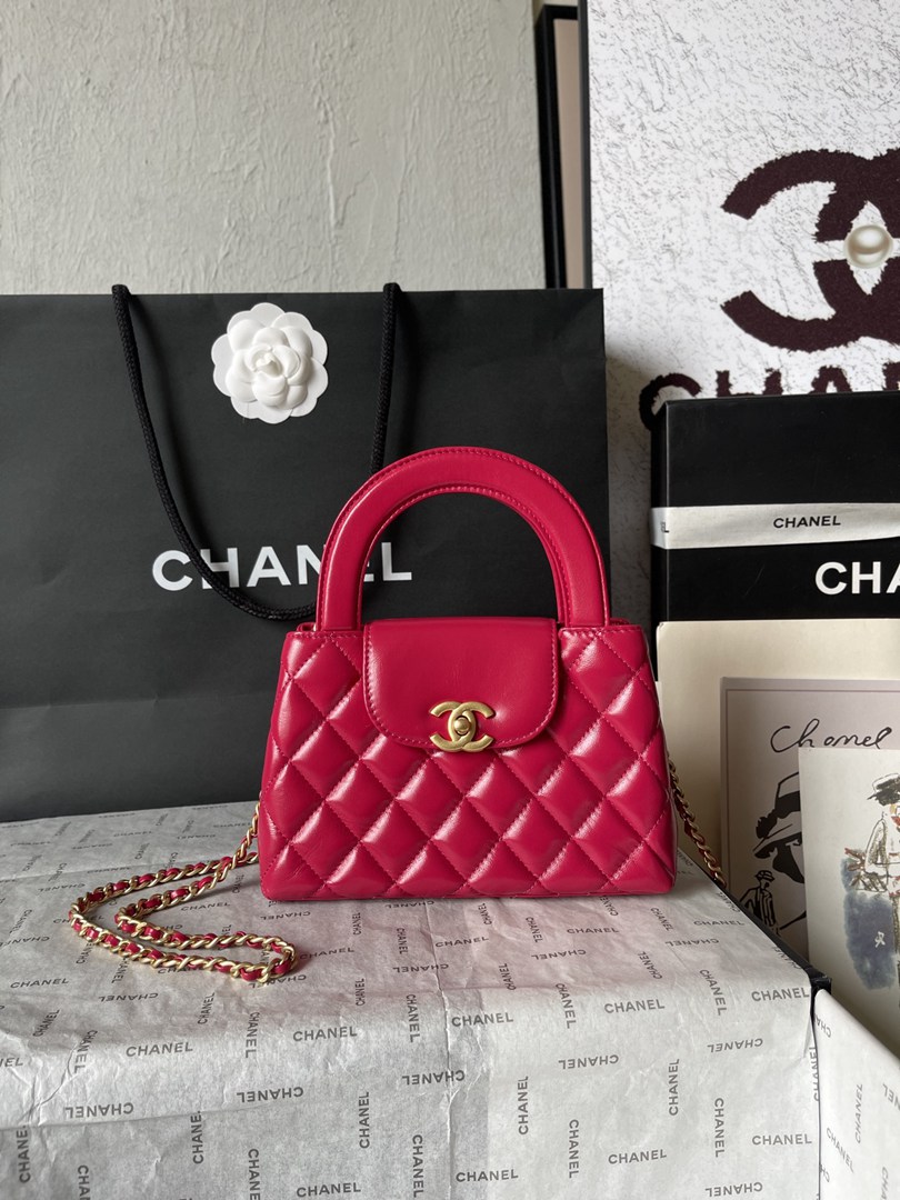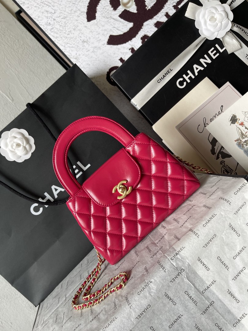 chanel 23k kelly bag Rose red shiny lambskin gold hardware